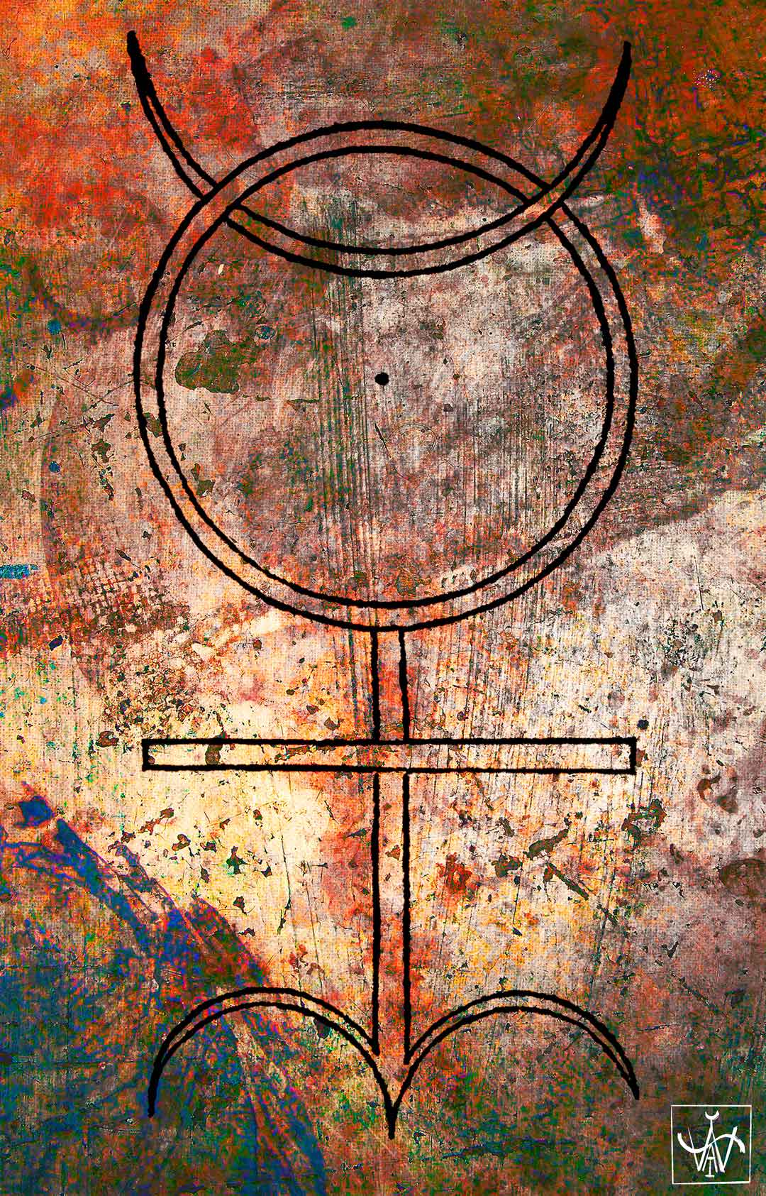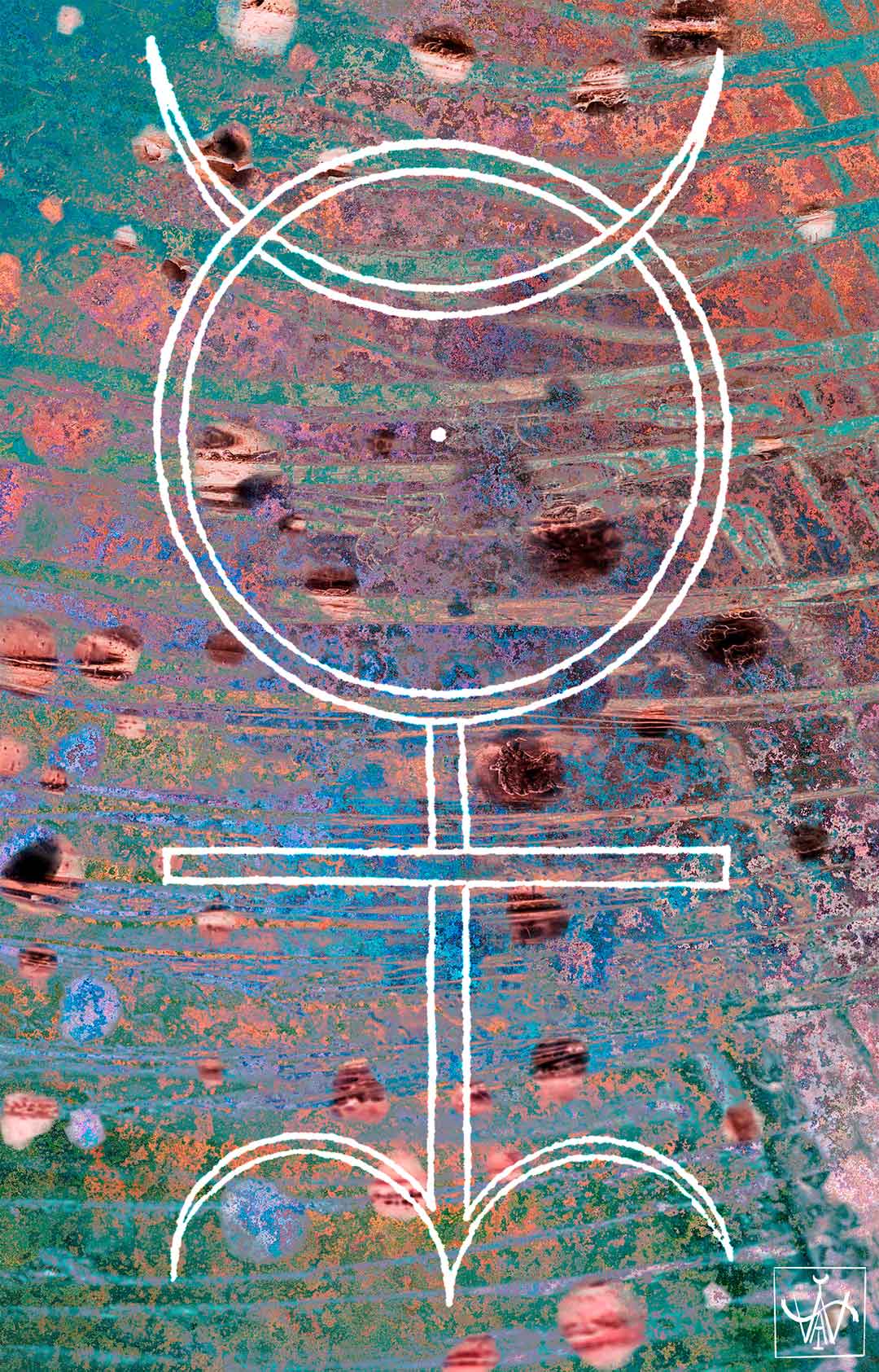 The theorems elucidate the cosmic image on two levels. On one level, they explain how its elements and proportions express in a mystical but at the same time strictly “scientific” manner the ultimate cause of the World, the Oneness. The theorems make clear how all principal numbers can be derived from the geometrical elements in the core of the diagram. Dee also elucidates how these elementary figures can be used to generate all the signs of the planets as well as the metals, thus referring to the major spheres of the universe (macro- and microcosms). On the second level the monad refers to the Magus, regarded as an experimenting scientist, emphasizing his potential to recreate the lost unity of existence. This layer of meaning stands in close relation to the alchemical significance which is alluded to by Dee when he identifies the two semicircles with the Zodiacal sign of Aries, a fire sign bringing about the alchemical transmutation. This process naturally includes the spiritual transformation of the operating Magus as well. The oval frame of the image stands for the Egg of the Philosophers, the alembic in which the alchemical process is taking place. In the sign’s basic pattern one can recognize the sign of Mercury, the key element of alchemy which at the same time has astrological importance. In Theorem XVIII, Dee calls attention to the interrelatedness of astrology and alchemy; he calls alchemy ‘astronomia inferior’. [...]”